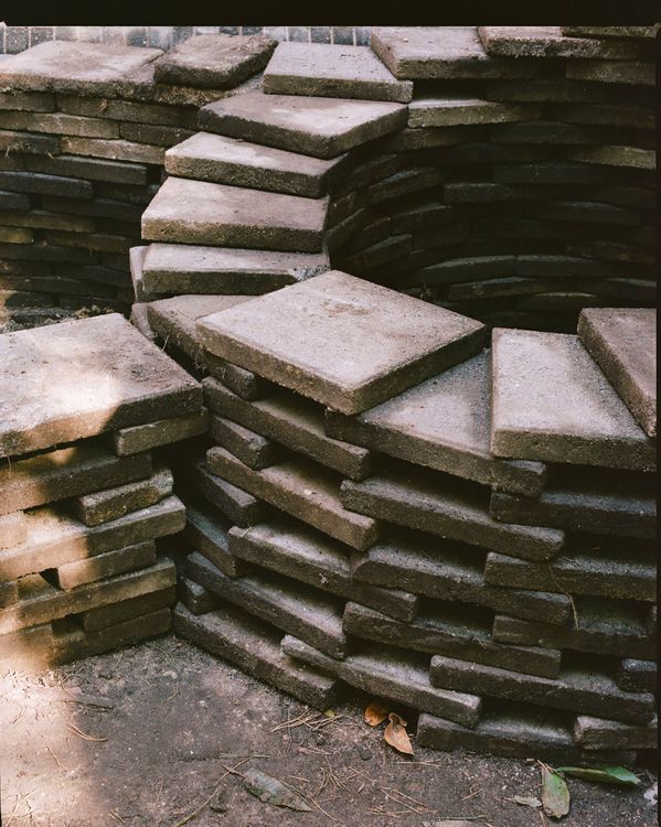The garden can be seen as a continuation of my earlier series Navigating the Unseen (2021), where natural materials such as stone and moss were transformed into installations. Here, my focus turns to the classic Dutch concrete paving tile (stoeptegel), an emblem of post-war modernism and functionality. By reshaping this square, concrete unit into flowing, circular movements, I reimagine something rigid as something organic, open, and alive.